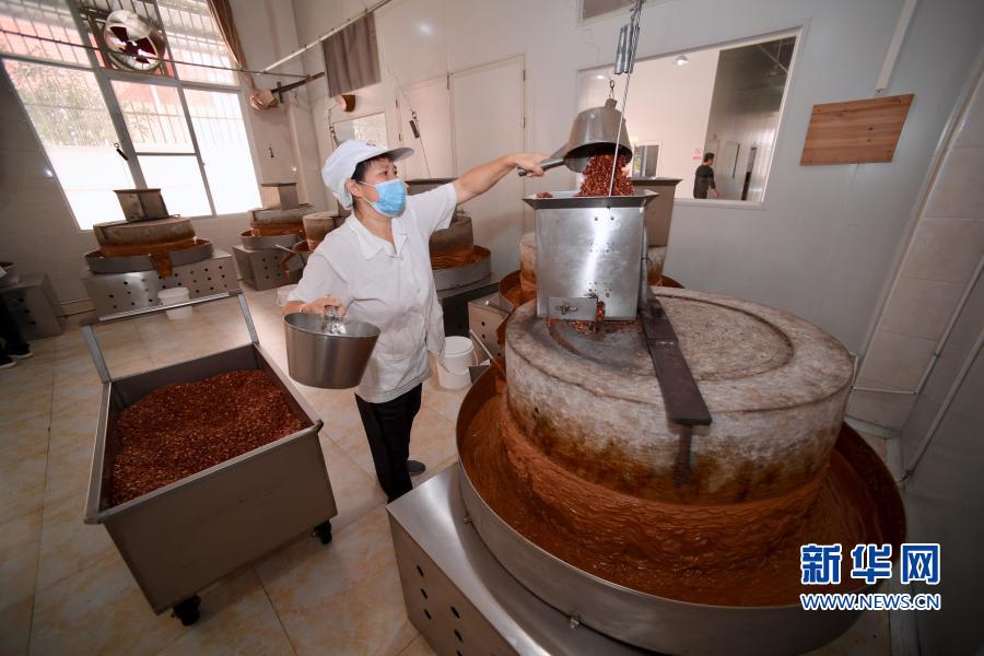 11月18日,沙縣小吃產(chǎn)業(yè)園一家企業(yè)在生產(chǎn)花生醬。新華社記者 姜克紅 攝