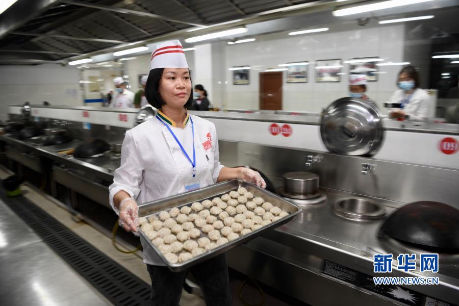 11月23日,在沙縣小吃培訓(xùn)中心,老師(左二)在教學(xué)員制作沙縣小吃。新華社記者 姜克紅 攝