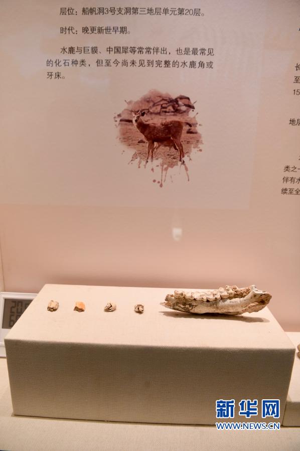 這是位于福建省三明市三元區(qū)巖前鎮(zhèn)的萬壽巖遺址博物館內(nèi)展出的動物牙齒化石(11月24日攝)。新華社記者 姜克紅 攝