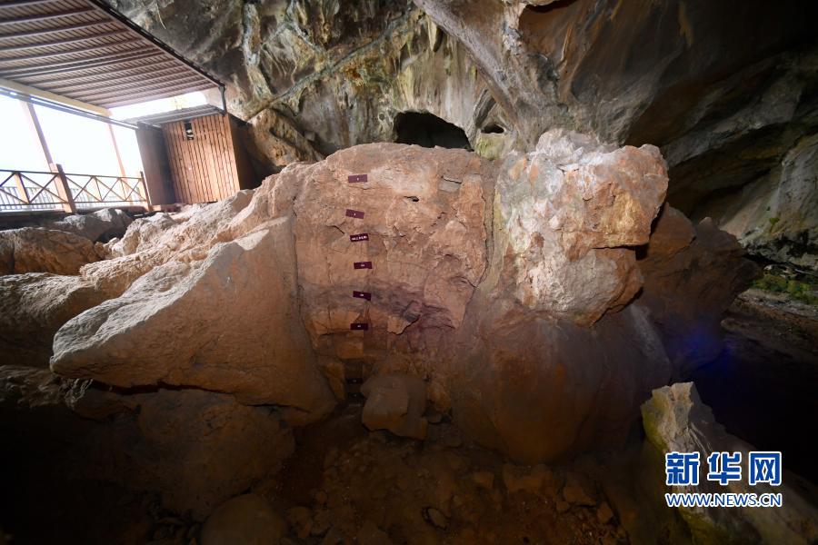這是位于福建省三明市三元區(qū)巖前鎮(zhèn)的萬壽巖國家考古遺址公園船帆洞洞口的考古發(fā)掘土層(11月24日攝)。新華社記者 姜克紅 攝