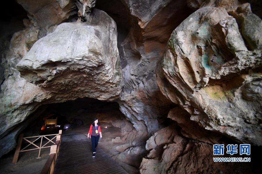 一名參觀者走出位于福建省三明市三元區(qū)巖前鎮(zhèn)的萬壽巖國家考古遺址公園船帆洞(11月24日攝)。新華社記者 姜克紅 攝 |