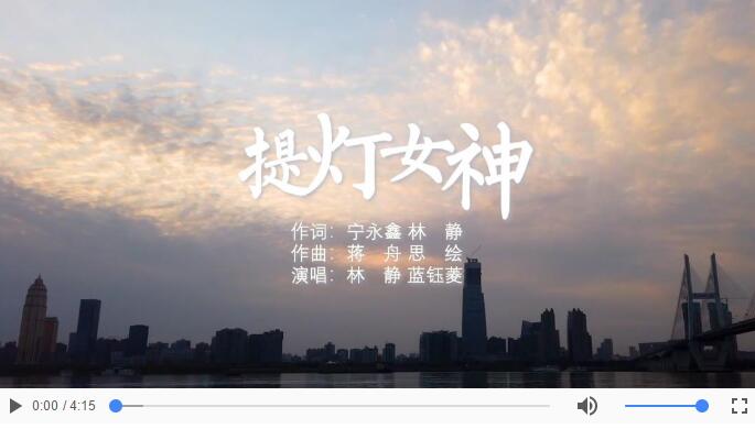 點擊圖片觀看視頻 福建省首批支援湖北抗擊疫情醫(yī)療隊創(chuàng)歌曲《提燈女神》,向所有戰(zhàn)斗在“抗疫”一線的醫(yī)務(wù)工作者們致敬。據(jù)歌詞作者、福建支援湖北武漢醫(yī)療隊總聯(lián)絡(luò)員寧永鑫介紹,《提燈女神》的創(chuàng)作靈感,源自于醫(yī)療隊在金銀潭醫(yī)院的一次夜間巡房。3月6日凌晨4點,福建首批支援湖北醫(yī)療隊隊員藍鈺菱,輕手輕腳地穿梭在各個漆黑的隔離病房。跟她一起巡房的林靜看到這樣的場景后,忽然理解了,為什么在一百多年前,南丁格爾護士會被士兵稱為“提燈女神”。歌曲的原唱部分,是由林靜和藍鈺菱在前方工作之余利用手機錄音,再回傳至福州合成。歌曲講述了福建省首批支援湖北抗擊疫情醫(yī)療隊隊員在金銀潭醫(yī)院戰(zhàn)“疫”期間的暖心故事。 總策劃:寧永鑫 張定宇 敖春磊 監(jiān)制:程立葳 林世丹 王先廣 導(dǎo)演:楊濛 作詞:寧永鑫 林靜 作曲:蔣舟 思繪 演唱:林靜 藍鈺菱 出鏡人員:福建省首批援湖北抗擊新冠疫情醫(yī)療隊隊員 拍攝:林勁榕 李潔 王琳 蘭靜 后期制作:楊濛 聯(lián)合出品:福建省首批支援湖北抗擊新冠疫情醫(yī)療隊 武漢市金銀潭醫(yī)院 新華網(wǎng) |