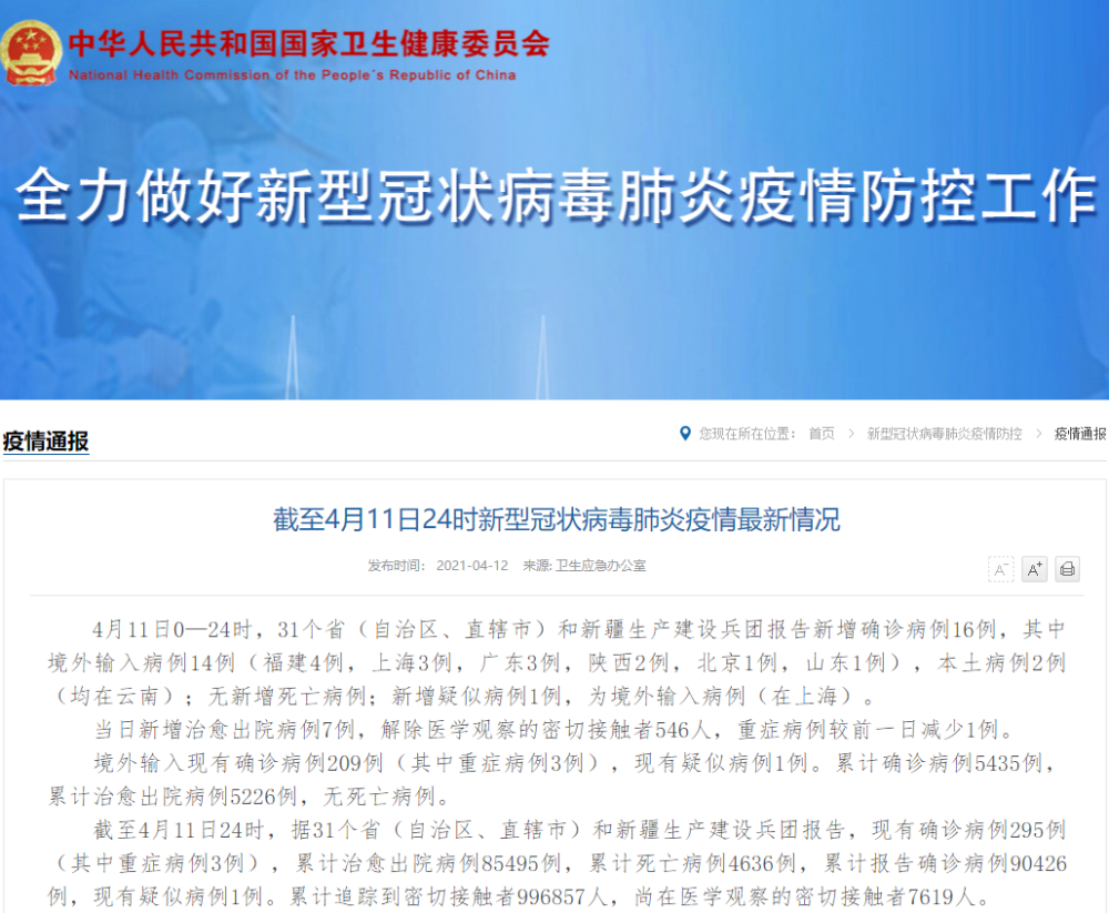 國(guó)家衛(wèi)健委:11日新增確診病例16例,其中本土2例