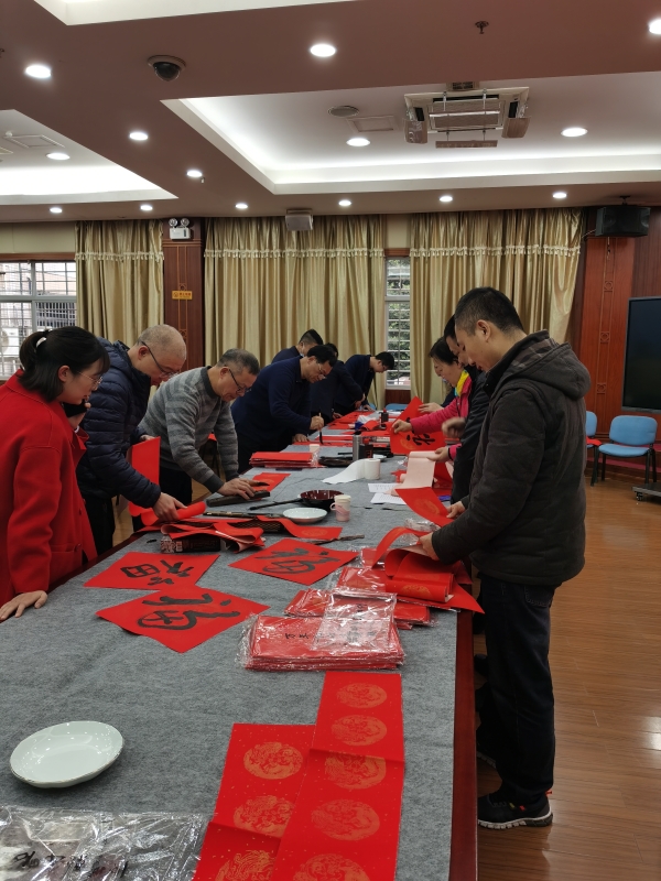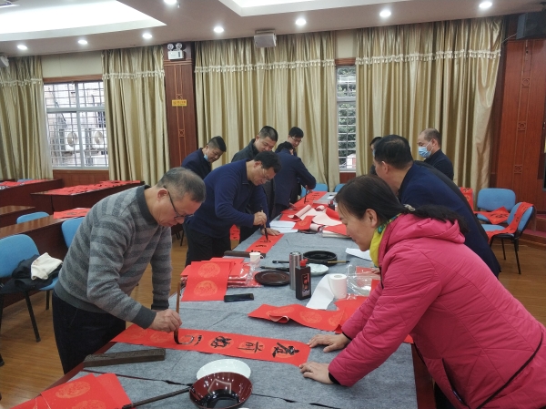 “紫燕銜春鋪錦繡,金牛煥彩耀乾坤”、“事事如意大吉祥,家家順心永安康”。一年一度的春節(jié)即將來臨,貼春聯(lián)是中國人過年的傳統(tǒng)習俗,火紅的春聯(lián)猶如簇簇躥動的火焰,點燃我們對新年的期待。 2月9日,福建省應急管理廳機關(guān)黨委、機關(guān)工會舉辦“迎新春、寫春聯(lián)、送祝?!被顒?,為全廳干部職工送上新春節(jié)日的祝福。廳領(lǐng)導、二級巡視員謝秀桐領(lǐng)銜廳里的書法愛好者們不吝筆墨,寫下一幅幅寓意美好的春聯(lián)和百態(tài)千姿的福字,充分彰顯了春節(jié)文化的濃情厚意。廳機關(guān)處室和直屬單位干部職工積極參與活動,紛紛守候在他們旁邊等待著屬于自己的那一份新春祝福。隨著一幅幅溢滿墨香的春聯(lián)展現(xiàn)在大家面前,大家忙著把剛“出爐”還沒干的春聯(lián)晾在桌子上、椅子上、地板上,每個人臉上都洋溢著燦爛笑容,活動現(xiàn)場洋溢著歡聲笑語和新春氣息。 通過開展活動,積極營造了吉祥如意的喜慶氛圍,增進了干部職工對傳統(tǒng)民俗的了解和認識,展示了我廳崇德向善、文明祥和的精神風貌。 (廳機關(guān)黨委 廳機關(guān)工會宣)
