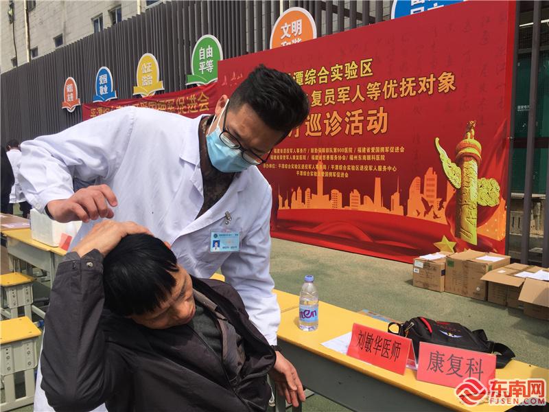 17日,在平潭人民體育場(chǎng)活動(dòng)現(xiàn)場(chǎng),聯(lián)勤保障部隊(duì)第九○○醫(yī)院康復(fù)科劉敏華醫(yī)生義務(wù)為退役老兵診斷。連日來(lái),省退役軍人事務(wù)廳組織省榮譽(yù)軍人康復(fù)醫(yī)院,聯(lián)合聯(lián)勤保障部隊(duì)第九○○醫(yī)院、省愛(ài)國(guó)擁軍促進(jìn)會(huì)、省慈善服務(wù)協(xié)會(huì)和福州東南眼科醫(yī)院等單位的醫(yī)療專(zhuān)家,從閩北山區(qū)建甌出發(fā),經(jīng)過(guò)300公里長(zhǎng)途跋涉,首站來(lái)到素有“千島之礁”之稱(chēng)的平潭,為殘疾軍人、在鄉(xiāng)老復(fù)員軍人和烈屬等優(yōu)撫對(duì)象提供免費(fèi)巡診。 省榮譽(yù)軍人康復(fù)醫(yī)院院長(zhǎng)練畢全說(shuō):“11年來(lái),我們每年都不間斷開(kāi)展優(yōu)撫對(duì)象醫(yī)療巡診活動(dòng),跋涉在山水間,風(fēng)雨兼程,幾乎走遍全省各縣,已為8000多名老復(fù)員軍人和其他優(yōu)撫對(duì)象提供了免費(fèi)診療服務(wù)?!备=ㄈ?qǐng)?bào)記者 何祖謀 攝影報(bào)道 |