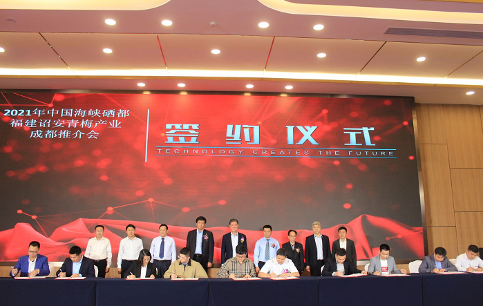 簽約現(xiàn)場 主辦方供圖 為把青梅產(chǎn)業(yè)打造成享譽(yù)全國的健康美食名片,在成都糖酒會喜迎八方客商期間,4月3日,由詔安縣委、縣政府主辦,詔安縣農(nóng)業(yè)農(nóng)村局、詔安縣青梅協(xié)會承辦的“2021年中國海峽硒都·福建詔安青梅推介會”在成都瑞城名人酒店成功舉辦。 《中國食品報》副總編馬崢、中國食品工業(yè)協(xié)會副秘書長徐堅,詔安縣人民政府縣長李亞容、副縣長林惠溪,以及喜多多集團(tuán)、紫山集團(tuán)、鹽津鋪?zhàn)印姿趴档葋碜匀珖鞯亟?jīng)銷商、商協(xié)會代表、媒體記者等近兩百人參加。 本次推介會以“福硒詔安 梅香天下”為主題,融入“中國青梅之鄉(xiāng)”“中國海峽硒都”“世界長壽之鄉(xiāng)”等元素;以青梅產(chǎn)業(yè)推介會為載體,整合融入青梅等詔安國家級名片元素;以梅為媒,經(jīng)貿(mào)唱戲,把壯大青梅產(chǎn)業(yè)、推動產(chǎn)業(yè)升級等有機(jī)結(jié)合起來。 悠久的青梅種植栽培、加工制作歷史,逐漸沉淀為獨(dú)特的詔安青梅文化,青梅產(chǎn)業(yè)成為詔安縣最具特色的產(chǎn)業(yè)。詔安縣種植青梅始于明代,大規(guī)模商品化種植已有三十多年的歷史,主要種植有“青竹梅”“白粉梅”“紅梅”“水梅”等多個品種。研究顯示,詔安青梅具有果大、核小、肉厚、酸度高等特點(diǎn)。除富含人體所需的18種氨基酸外,還富含硒元素。 通過近年來科學(xué)規(guī)劃發(fā)展,詔安縣擁有全國最完善的青梅加工體系和最大的青梅加工規(guī)模。全縣擁有青梅加工企業(yè)130多家,其中規(guī)模以上青梅加工企業(yè)21家。擁有省級農(nóng)業(yè)產(chǎn)業(yè)化龍頭企業(yè)6家,市級10家,縣級22家,已開發(fā)出青梅蜜餞類、青梅鹽漬類、青梅涼果類、青梅酒類、青梅飲料類、混制品類、保健食品類等7大系列300多個品種的青梅精制產(chǎn)品。 目前,全縣種植青梅面積13.3萬畝,總產(chǎn)量達(dá)10.5萬噸,總產(chǎn)值達(dá)60億元,年出口產(chǎn)值達(dá)8000多萬美元,是我國主要青梅生產(chǎn)加工和出口產(chǎn)業(yè)基地。 近年來,詔安縣委、縣政府以及詔安縣青梅協(xié)會等有關(guān)單位協(xié)同努力,為詔安青梅如何實(shí)現(xiàn)高質(zhì)量發(fā)展指明了方向。詔安青梅這顆生態(tài)果、富硒果,逐漸被打造成為引領(lǐng)健康潮流的時尚果、帶領(lǐng)群眾增收的扶貧果、支撐經(jīng)濟(jì)發(fā)展的致富果,成功走上了一條生態(tài)環(huán)境“高顏值”與經(jīng)濟(jì)發(fā)展“高質(zhì)量”融合的綠色之路。 據(jù)悉,在成都春糖舉辦前夕,詔安縣通過在成都地鐵和戶外大屏、微信朋友圈等方式進(jìn)行廣告投放,全方位展示詔安青梅品牌形象。4月1—6日,在成都梨園祥酒店設(shè)立青梅產(chǎn)業(yè)展示館,組織10家青梅代表企業(yè)、百余種產(chǎn)品參展,進(jìn)行宣傳推廣招商,歡迎來自全國各地的采購商前往品鑒詔安青梅、了解詔安青梅、愛上詔安青梅。 據(jù)了解,截至3日下午,詔安縣10家企業(yè)與58家來自全國各地客商簽訂意向銷售合作總額達(dá)10.6億元。其中,推介會上,福建暖春酒業(yè)股份有限公司、詔安梅滿天下食品有限公司、福建省詔安四海食品有限公司、漳州市順興達(dá)食品有限公司、詔安縣瑞梅食品有限公司等10家詔安縣青梅產(chǎn)業(yè)代表性企業(yè)與杭州榕慶食品有限公司等10家客商舉行意向銷售合作簽約,簽約總額達(dá)3.12億元。 |