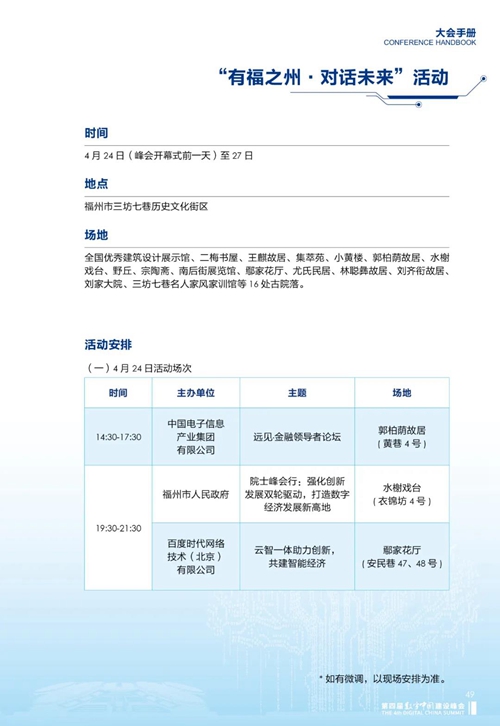 07 接下來 是第四屆數(shù)學(xué)中國建設(shè)峰會的 “有福之州·對話未來”活動 和“閩江夜話”活動 時間、地點及詳細的活動安排 干貨滿滿,想你所想~