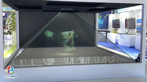 三星堆文物通過 3D全息投影技術(shù) 將文物影像懸浮在柜體實(shí)景中 實(shí)現(xiàn)具有360°絕對(duì)可視的特效 縱深感非常強(qiáng)