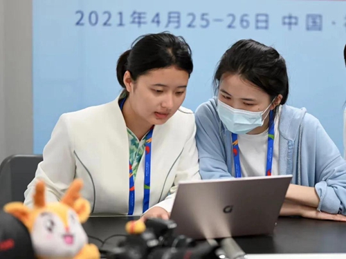 媒體保障的“小茉莉”們,用標(biāo)準(zhǔn)的禮儀、熱情的服務(wù)協(xié)助新聞中心工作人員接待記者、引導(dǎo)記者前往采訪間、安排茶歇并維持新聞中心秩序。 創(chuàng)新大賽組志愿者