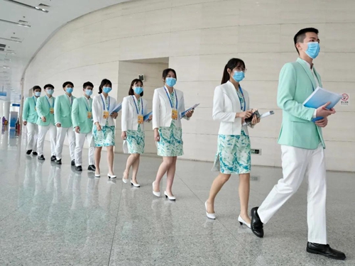 在22號的實“戰(zhàn)”演練基礎(chǔ)上,梳理排查志愿服務(wù)薄弱環(huán)節(jié),再培訓(xùn)、再演練,“小茉莉”們進(jìn)入崗前細(xì)化培訓(xùn),在實踐中加深對各自的服務(wù)地點、服務(wù)時間和崗位職責(zé)的認(rèn)知,確保做到“人崗合一”,并強(qiáng)化對站姿、行走、微笑以及微表情等形象和禮儀管理,全力保障第四屆數(shù)字中國建設(shè)峰會順利召開。