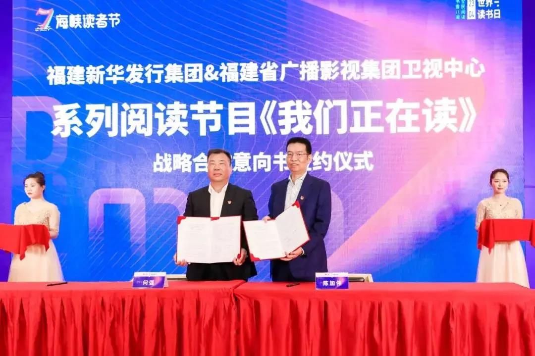 4月22日上午,海峽出版發(fā)行集團所屬的福建新華發(fā)行集團還和福建省廣播影視集團衛(wèi)視中心簽訂了系列閱讀節(jié)目《我們正在讀》戰(zhàn)略合作意向書。省廣播影視集團黨組副書記、總經(jīng)理莊志松,福建教育學院黨委委員、副院長張志剛,海峽出版發(fā)行集團黨委副書記嚴桂忠出席簽約儀式。海峽出版發(fā)行集團黨委委員、副總經(jīng)理何強,省廣播影視集團黨組成員、副董事長陳加偉上臺簽約。