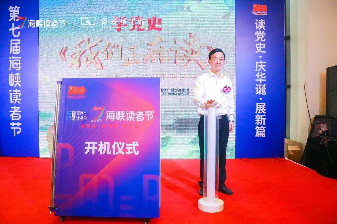 4月23日,在第七屆海峽讀者節(jié)開幕式上,大型沉浸式閱讀分享類節(jié)目《我們正在讀》開機啟動。福建省人大常委會副主任嚴可仕,福建省政協(xié)副主席劉獻祥,中共福建省委組織部副部長、老干局局長兼省政協(xié)文化文史和學習委員會主任何國輝,中共福建省委宣傳部副部長、一級巡視員、省新聞出版局(省版權(quán)局)局長肖貴新,中共福州市委副書記、福州新區(qū)管委會常務副主任林飛,海峽出版發(fā)行集團黨委書記、董事長林義良,福建廣播影視集團黨組副書記、總經(jīng)理莊志松等出席開機儀式。