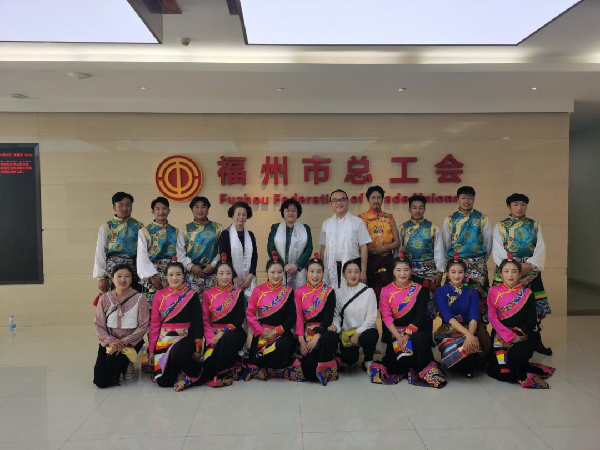 受邀參加第十一個(gè)“中國旅游日”福州分會場演出(福州鼓山風(fēng)景區(qū))。圖片來源:福建第九批援藏隊(duì) 為期43天的學(xué)習(xí)交流活動圓滿結(jié)束,在這43天里兩地演員一起排練、互學(xué)相長、攜手進(jìn)步。