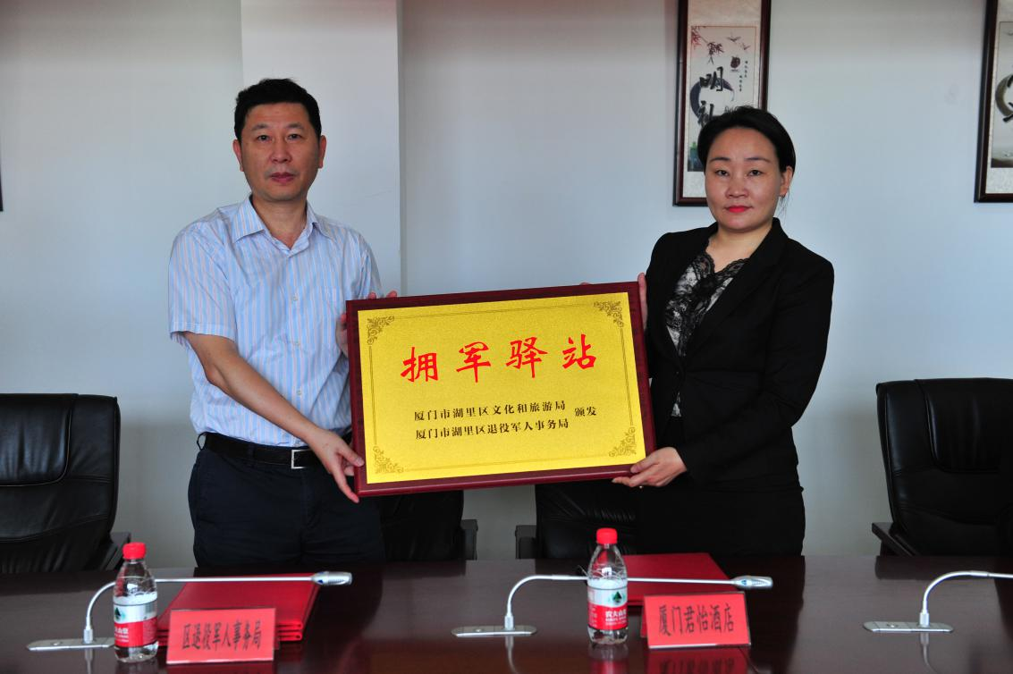 2021年4月26日湖里區(qū)退役軍人事務(wù)局為廈門君怡酒店授牌 廈門市退役軍人服務(wù)中心供圖