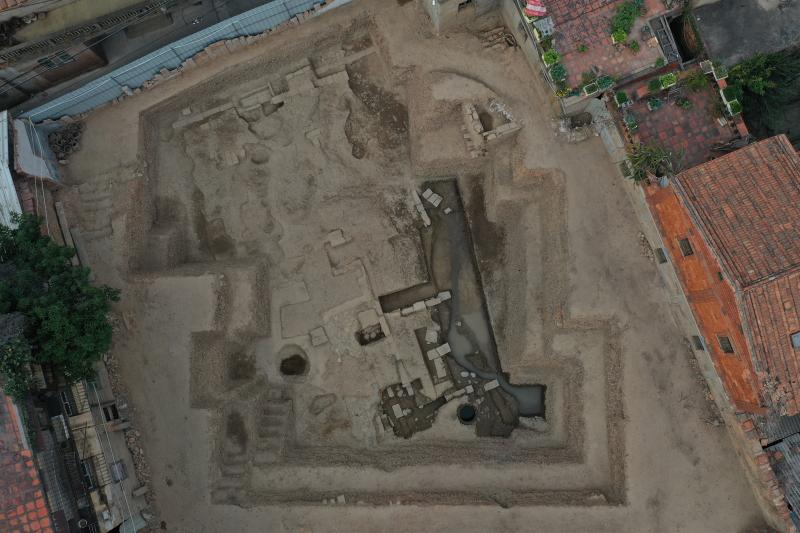 市舶司遺址東北發(fā)掘區(qū)考古發(fā)掘鳥瞰圖(王俊攝影)