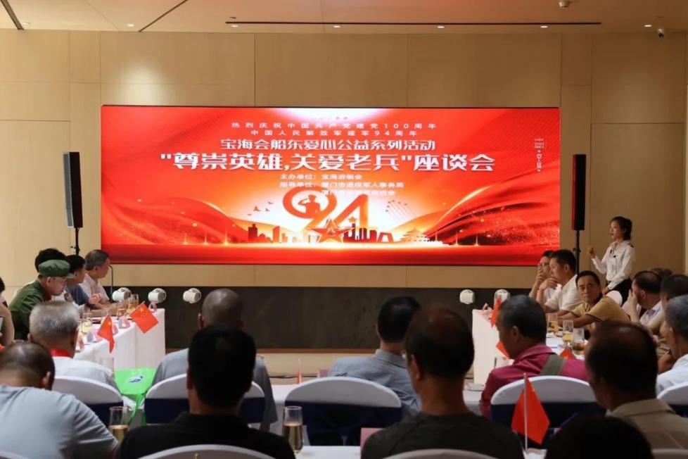 廈門市退役軍人服務(wù)中心供圖 7月26日下午,由廈門市退役軍人事務(wù)局、廈門市愛(ài)國(guó)擁軍促進(jìn)會(huì)指導(dǎo),廈門寶海游艇會(huì)主辦的“尊崇英雄,關(guān)愛(ài)老兵”座談會(huì)和慰問(wèn)退役軍人活動(dòng)拉開(kāi)序幕。本次活動(dòng)由廈門寶海游艇會(huì)船東捐贈(zèng)慰問(wèn)金和慰問(wèn)物資46萬(wàn),慰問(wèn)221位退役軍人,以此向退役老兵獻(xiàn)上一份尊崇和敬重。