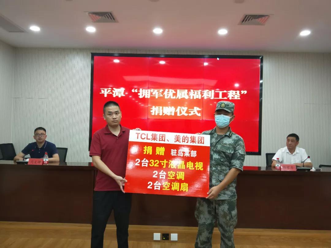 9月14日上午,平潭綜合試驗(yàn)區(qū)退役軍人事務(wù)局、退役軍人服務(wù)中心聯(lián)合TCL集團(tuán)、美的集團(tuán)、三陽(yáng)電器舉行“擁軍優(yōu)屬福利工程”捐贈(zèng)儀式,拉開了平潭“擁軍優(yōu)屬福利工程”的序幕。 當(dāng)天,TCL集團(tuán)和美的集團(tuán)為平潭綜合實(shí)驗(yàn)區(qū)退役軍人服務(wù)中心、四個(gè)片區(qū)退役軍人服務(wù)站捐贈(zèng)了電視和冰箱;為全區(qū)58戶困難退役軍人每戶捐贈(zèng)一臺(tái)風(fēng)扇;為駐島某部捐贈(zèng)了電視、空調(diào)和空調(diào)扇。
