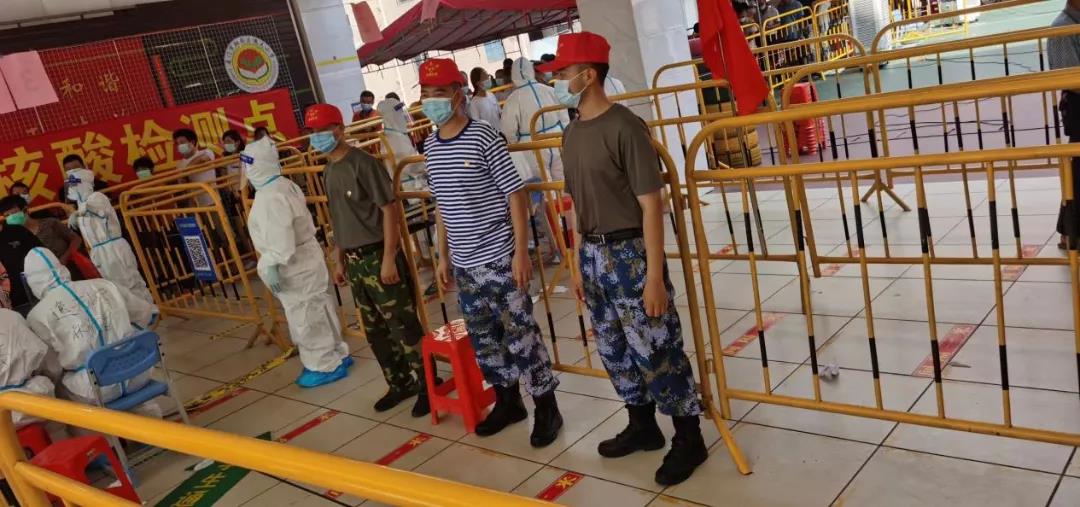 翔安區(qū)民安街道洪溪社區(qū)退役軍人志愿者服務隊在社區(qū)核酸檢測現(xiàn)場維持秩序 |