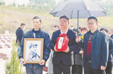 吳斗光烈士歸葬永定區(qū)城區(qū)烈士公墓儀式現(xiàn)場 大地?zé)o言,松柏嗚咽。6日上午9時許,龍巖市永定區(qū)城區(qū)烈士公墓莊嚴(yán)肅穆,一場特別的安葬儀式正在這里舉行。 歷經(jīng)64載的風(fēng)風(fēng)雨雨,犧牲在泉州的永定籍烈士吳斗光終于魂歸故里。烈士的親屬手捧遺像和骨灰壇,緩步走向公墓,祭奠、緬懷、安葬、獻花…… 去時少年身,歸來英雄魂。山河已無恙,精神永留存。英雄,回家了! 墓碑上,鮮紅的五角星折射出不朽的靈魂。吳斗光烈士的生命永遠(yuǎn)定格在24歲,那張黑白戎裝照芳華依舊。 吳斗光是永定下洋鎮(zhèn)思賢村人,1955年3月入伍,在三五一七部隊任副班長,1957年1月2日在一次海防執(zhí)勤中不幸犧牲,后來埋葬于石獅市錦尚東店與鴻山伍堡交界的地方。 “聽父輩們說,叔叔當(dāng)時和父親家書約定:要回家參加父親的婚禮,沒想到正在辦喜事時,卻傳來了叔叔犧牲的消息?!眳嵌饭獾闹杜畢谴核f。 吳春水告訴記者,父親吳濟光也曾到晉江、石獅一帶尋訪叔叔的安葬之地,可那個年代交通不便利,叔叔生前所在部隊也改編了,想找到當(dāng)年的墓實在不容易。 “奶奶在世時,每逢叔叔忌日,都會看著叔叔的照片抹眼淚。96歲的父親本來也要等著迎接叔叔的遺骸,但遺憾的是父親在上個月6日不幸離世,兄弟倆只能在天堂相見了?!眳谴核f。 青山有幸埋忠骨。吳斗光烈士靜靜地長眠在異鄉(xiāng)的土地上,這一躺就是64年。 然而,由于年深日久,風(fēng)吹雨淋,烈士墓地以及周邊日漸荒涼,墓碑上面的字也逐漸模糊起來。 烈士是誰?來自哪里?今年清明時節(jié),多年來一直關(guān)注著這座烈士墓的石獅當(dāng)?shù)赝宋檐娙饲駱s周,在一片木麻黃林中發(fā)現(xiàn),烈士墓碑幾乎淹沒在荒煙蔓草當(dāng)中,保護情況不容樂觀。這位熱心的71歲老黨員買來紅漆、毛筆等,照著墓碑的凹跡一字一字地描起來。 紅漆過處,英名顯現(xiàn)。邱榮周立即與當(dāng)?shù)孛襟w石獅日報聯(lián)系,由此,泉州、龍巖兩地山海攜手,共同發(fā)起了一場聲勢浩大的“為烈士尋親”行動。 很快,這場跨越山海的烈士尋親就有了下文。 “4月8日,有人通知我們,叔叔的墓在石獅,我們?nèi)胰说男那槎际旨?,三代人多年的夙愿終于要實現(xiàn)了?!眳嵌饭獾闹蹲訁莾?yōu)金說,4月13日,吳家人一行便急匆匆地來到石獅祭掃吳斗光墓。 在烈士墓前,后輩們擺上了家鄉(xiāng)的清茶、花生,訴說著無盡的思念。烈士的哥哥吳濟光因96歲高齡、腿腳不便,未能成行,但老人錄制了一段視頻,讓后輩帶到弟弟墓前,隔空“見面”,訴說哀思。 吳家人向石獅市退役軍人事務(wù)局表達(dá)了把墓遷回永定的迫切愿望。經(jīng)兩地共同努力,11月30日,在石獅退役軍人服務(wù)中心舉行了吳斗光烈士遺骸交接儀式。12月6日,吳斗光烈士的遺骸正式安葬于永定區(qū)城區(qū)烈士公墓,這位闊別故土60余載的閩西子弟終于安眠在故鄉(xiāng)的懷抱里。 “從石獅到永定,短短300多公里的‘回家’路,吳斗光烈士用了64年終于‘走’完了!目前永定已完成786座零散烈士墓的遷移工作。下一步,我們將加大力度做好零散烈士墓集中遷移和烈士公墓的建設(shè)工作,讓更多像吳斗光一樣的烈士英魂早日‘回家’?!卑苍醿x式現(xiàn)場,永定區(qū)退役軍人事務(wù)局局長胡立志說。 記者手記 讓英烈名字永遠(yuǎn)熠熠生輝 埋骨他鄉(xiāng)64載后,吳斗光烈士終于歸葬故土。對于烈士一家而言,實現(xiàn)了三代人的夙愿,他們無疑是幸運的;而對于全社會來說,透過吳斗光烈士回家這一曲折動人的單體事件,凝聚起不忘歷史、崇尚英烈,讓英烈的名字永遠(yuǎn)熠熠生輝的思想共識,才是題中應(yīng)有之義。 龍巖是一塊用忠誠和鮮血浸染的紅色土地,巍巍松毛嶺、滔滔不息的湘江、艱苦卓絕的長征路上……都烙印著閩西兒女浴血奮戰(zhàn)的忠誠與犧牲。據(jù)統(tǒng)計,全市有在冊烈士近2.4萬名,約占全省烈士總數(shù)的53%,此外還有超5萬名無名烈士仍在核對尋找中,正所謂“你們的名字無人知曉,你們的功績永世長存”。 進入新的歷史時期,如何利用好閩西紅色資源優(yōu)勢,是一個非常具有現(xiàn)實意義的課題。而在這方面,小到幫吳斗光烈士“回家”這樣的生動個例,大到推進零散烈士墓遷移集中安葬,加大英雄烈士紀(jì)念設(shè)施、革命紀(jì)念地保護力度,再到推動制度層面的紅色文化遺存保護立法等等,無疑都彰顯了龍巖在這方面的積極探索和主動作為。 讓英烈的名字永遠(yuǎn)熠熠生輝,讓紅色基因在閩西紅土地世代生生不息,匯聚成推進老區(qū)蘇區(qū)振興發(fā)展的強大力量,這是對先烈最好的告慰。 |