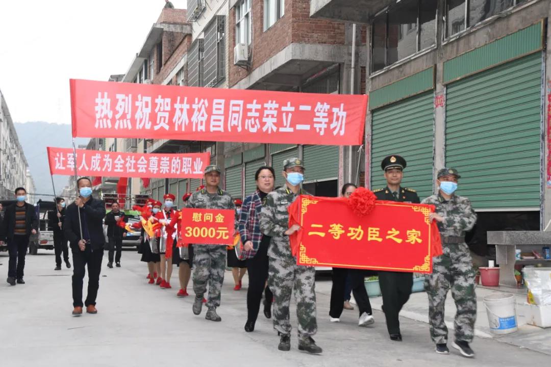 在眾多親朋好友和家鄉(xiāng)媒體的見證下,縣政府副縣長王鴻、人武部政委沈建芳將喜報(bào)、慰問金送到了二等功臣林裕昌的父母親手中,并為軍屬們披上功臣綬帶。當(dāng)工作人員將“二等功臣之家”牌匾送到林裕昌家中時(shí),現(xiàn)場的村民們紛紛稱贊,喝彩聲、掌聲連綿不斷。已93歲高齡的軍屬湯士林奶奶笑得合不攏嘴,更是格外高興,不斷跟街坊鄰居嘮叨:“太高興了,我孫子立功全鎮(zhèn)的人都知道了?!?/p>