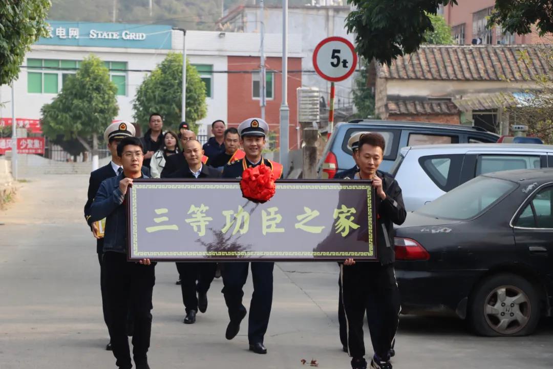 座談中,軍地領(lǐng)導(dǎo)與軍屬們親切交談。詳細(xì)了解林裕昌在部隊(duì)服役的基本情況和他們的家庭生活狀況,向軍屬們表示由衷的祝賀和感謝,感謝他們?yōu)閲?、為部?duì)培養(yǎng)了優(yōu)秀人才。希望繼續(xù)鼓勵(lì)孩子在保家衛(wèi)國的神圣崗位上,積極進(jìn)取,錘煉意志和本領(lǐng),爭取以更好的成績和更優(yōu)異的表現(xiàn)為家鄉(xiāng)父老爭光。 在中國女排華安縣先鋒希望小學(xué)、先鋒村村部,林裕昌的光榮榜張貼在顯要位置,現(xiàn)場村民、學(xué)生不時(shí)停下腳步,認(rèn)真觀看功臣的事跡。 “我們十分重視兵員質(zhì)量的輸送,一直把為立功受獎(jiǎng)送喜報(bào)活動(dòng)作為開展擁軍優(yōu)屬工作的重要抓手,以此激發(fā)廣大適齡青年參軍報(bào)國的熱情?!笨h人武部政委沈建芳表示,華安縣已超過50年未出現(xiàn)退兵現(xiàn)象。此次軍地聯(lián)合送喜報(bào)活動(dòng),既增強(qiáng)現(xiàn)役軍人家屬的自豪感和榮譽(yù)感,切實(shí)讓軍人受到尊崇,更是匯聚全社會(huì)學(xué)習(xí)功臣、關(guān)愛軍屬、支持國防的正能量。 據(jù)了解,林裕昌,中共黨員,華安縣仙都鎮(zhèn)人。2015年考取國防科技大學(xué),2019年7月參加工作,現(xiàn)任32137部隊(duì)某部參謀,在部隊(duì)期間表現(xiàn)突出,完成任務(wù)出色。2020年、2021年連續(xù)兩年被評(píng)為“四有”優(yōu)秀軍官,2021年12月因完成重大任務(wù)表現(xiàn)突出獲全軍一等獎(jiǎng)并榮立二等功1次,同時(shí)被陸軍第81集團(tuán)軍表彰為2021年度“集團(tuán)軍最美奮斗者”。 龍海 1月13日上午,由龍海區(qū)退役軍人局、港尾鎮(zhèn)武裝部、鎮(zhèn)退役軍人服務(wù)站組成的送喜報(bào)小分隊(duì)來到江明福家中,為榮獲三等功的現(xiàn)役軍人江明福家屬送上立功喜報(bào)和慰問金,讓他們共享這份喜悅榮光。
