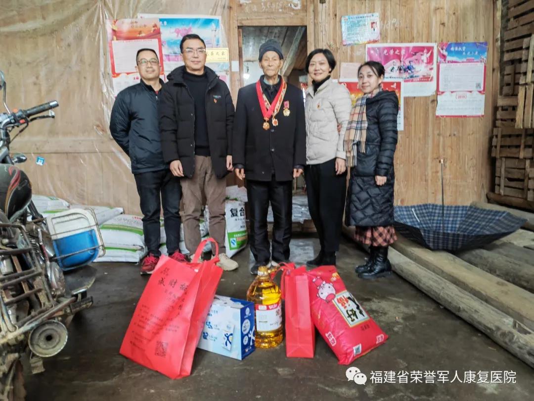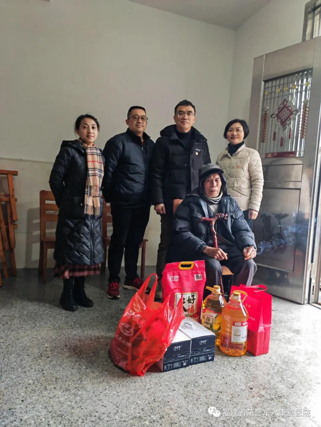 在新春佳節(jié)即將來(lái)臨之際,福建省榮譽(yù)軍人康復(fù)醫(yī)院黨委班子成員帶隊(duì)分別前往浦城、政和、建甌迪口鎮(zhèn)、建甌吉陽(yáng)鎮(zhèn)等地看望慰問(wèn)常態(tài)化聯(lián)系退役軍人。向他們送上慰問(wèn)品,致以節(jié)日問(wèn)候和美好祝福。