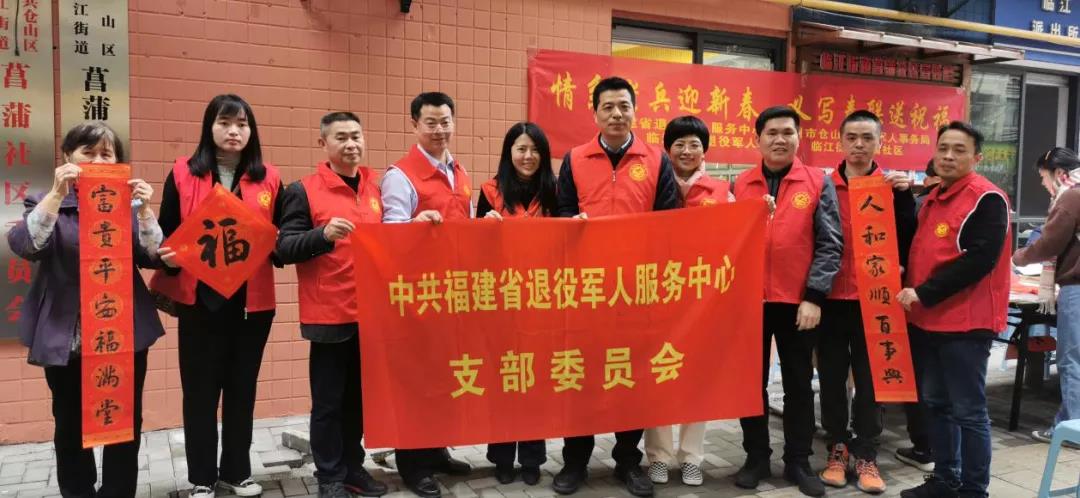 志愿服務(wù)送溫情,濃濃關(guān)懷暖兵心。在虎年春節(jié)即將來臨之際,為進一步關(guān)心關(guān)愛現(xiàn)役軍人家屬、退役軍人和其他優(yōu)撫對象,營造喜慶的節(jié)日氛圍,省退役軍人服務(wù)中心、省軍供站深入福州掛鉤聯(lián)系社區(qū)紛紛組織開展迎新春志愿活動,把黨和政府的關(guān)愛和溫暖送到老兵心坎上。 省退役軍人服務(wù)中心 1月26日下午,省退役軍人服務(wù)中心聯(lián)合福州市倉山區(qū)退役軍人事務(wù)局深入倉山區(qū)臨江街道菖蒲社區(qū)開展“情系老兵迎新春 義寫春聯(lián)送祝福”活動,把祝福送到退役老兵和其他優(yōu)撫對象身邊。