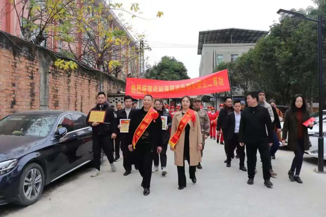為弘揚(yáng)“擁軍優(yōu)屬、擁政愛民”的光榮傳統(tǒng),福州市倉山區(qū)退役軍人事務(wù)局聯(lián)合區(qū)人武部等單位為轄區(qū)榮立二等功的現(xiàn)役軍人代利強(qiáng)的家屬送去立功喜報(bào)和慰問金。 鑼鼓聲中,慰問組一行來到軍人家中,為軍人家屬佩戴綬帶和紅花,送上立功喜報(bào)和慰問金,了解軍人在部隊(duì)的服役情況和家屬的生活狀況,叮囑當(dāng)?shù)馗刹恳P(guān)心關(guān)愛軍人家庭,幫助解決實(shí)際困難。 據(jù)了解,代利強(qiáng)于2007年12月入伍,服役以來先后獲得二等功1次、三等功2次、集體三等功1次、先進(jìn)班1次、優(yōu)秀士官8次、四有優(yōu)秀士官1次、軍事訓(xùn)練標(biāo)兵1次、優(yōu)秀文體骨干1次,特別是2020年參加俄羅斯國際軍事比武競賽取得團(tuán)體第二名的好成績。 祖孫三代老兵送錦旗