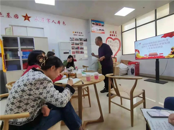 培訓(xùn)現(xiàn)場,區(qū)退役軍人服務(wù)中心主任對建檔立卡和優(yōu)待證申領(lǐng)發(fā)放工作進(jìn)行深入部署和全盤規(guī)劃。本次業(yè)務(wù)培訓(xùn)會對優(yōu)待證工作開展情況進(jìn)行指導(dǎo),分析解答工作推進(jìn)過程中出現(xiàn)的疑難問題,并與鄉(xiāng)鎮(zhèn)退役軍人服務(wù)站經(jīng)辦人員一道協(xié)商解決人員、設(shè)備、辦公場所等保障要素。 目前,泉州臺商投資區(qū)已全面展開退役軍人及其他優(yōu)撫對象優(yōu)待證申領(lǐng)發(fā)放工作,區(qū)、鄉(xiāng)鎮(zhèn)兩級建立工作機(jī)制、整合工作力量、細(xì)化工作指導(dǎo),確保建檔立卡和優(yōu)待證申領(lǐng)工作有序推進(jìn)。 寧德柘榮縣開展優(yōu)待證業(yè)務(wù)培訓(xùn)會