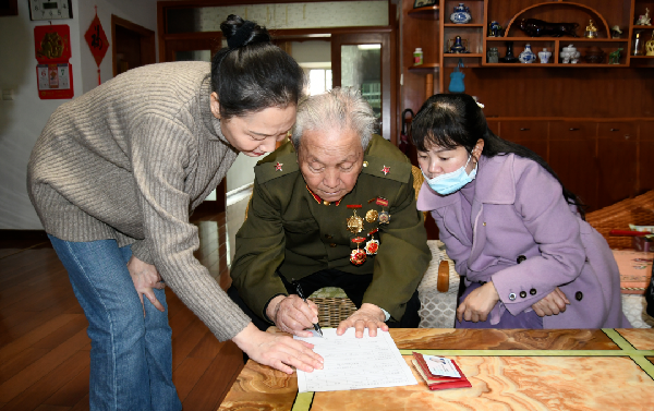 3月7日,龍巖市優(yōu)待證申領(lǐng)制發(fā)服務(wù)先鋒隊志愿者到行動不便的軍休干部戴木成家中開展上門服務(wù),采集辦證信息,介紹優(yōu)待證的申領(lǐng)制發(fā)流程和合作銀行優(yōu)惠政策。
