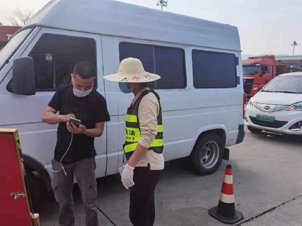 由于人手緊缺,查驗點數(shù)量有限,高速路口上常常排起車輛“長龍”,莊小敏不得不穿梭在車隊間,扯著嗓子一遍遍的喊,讓司機事先帶好口罩、掃碼登記、打開健康碼等,以便車輛能快速查驗通過?!昂韲刀己皢×?,感覺像是回到了部隊練兵的時候?!彼χf。