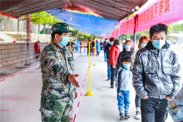 臺商投資區(qū) 在臺商投資區(qū)里春村黨總支和退役軍人服務(wù)站號召下,10名退役軍人志愿者奔赴里春村各個設(shè)卡點和全員核酸檢測點協(xié)助開展疫情防控服務(wù)工作。他們在自己的崗位上嚴(yán)防死守,實行24小時三班輪流,參與測體溫、查看健康碼、通行證檢查核實等工作。