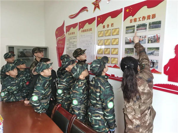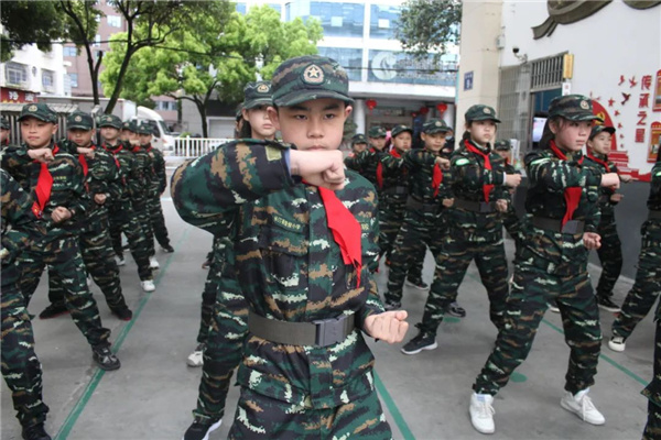 創(chuàng)建“少年軍?!本C合學(xué)軍 學(xué)校成立了以少先隊(duì)大隊(duì)干部、文明監(jiān)督員、中高年級(jí)班干部等優(yōu)秀學(xué)生代表為主體的“少年軍?!?,聘請(qǐng)武警官兵擔(dān)任軍事輔導(dǎo)員。借助少年軍校這個(gè)載體,開展一系列國防教育綜合學(xué)軍活動(dòng)。組建了“國旗護(hù)衛(wèi)班”,每周一早晨“國旗護(hù)衛(wèi)班”的出旗、護(hù)旗、展旗、升旗等莊嚴(yán)儀式,使學(xué)生在莊嚴(yán)肅穆的升旗儀式中增進(jìn)了熱愛祖國的情感;成立“國防武術(shù)班”學(xué)習(xí)軍體拳,把強(qiáng)身和防身結(jié)合,增進(jìn)日常生活中的安全防護(hù)意識(shí);開展富有特色的“陽光體育”活動(dòng),融軍事訓(xùn)練、跑步鍛煉、軍體拳操為一體,增強(qiáng)學(xué)生體能;設(shè)置我是“小軍人”執(zhí)勤情境,引導(dǎo)學(xué)生實(shí)踐“軍人禮儀”,提高文明素養(yǎng)……學(xué)生通過豐富的實(shí)踐體驗(yàn),受益匪淺。作為“少年軍?!钡某蓡T,學(xué)生張智淳說:“通過參加學(xué)校的各種‘軍事活動(dòng)’,我學(xué)到了軍人頑強(qiáng)奮斗的作風(fēng),認(rèn)識(shí)到國防鞏固,萬家安寧的道理。”小智淳信心滿滿,表示要努力學(xué)習(xí),長(zhǎng)大后當(dāng)一名真正的軍人,報(bào)效祖國。