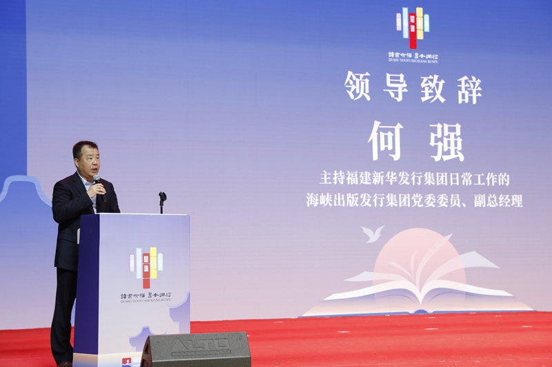 主持福建新華發(fā)行集團日常工作的海峽出版發(fā)行集團黨委委員、副總經(jīng)理何強致辭 唐偉平 攝 主持福建新華發(fā)行集團日常工作的海峽出版發(fā)行集團黨委委員、副總經(jīng)理何強表示,此次大會是福建省第八屆海峽讀者節(jié)的主要活動內(nèi)容之一。福建新華發(fā)行集團作為國有文化企業(yè),肩負著“舉旗幟、聚民心、育新人、興文化、展形象”的責任擔當,希望通過舉辦此次閱讀大會,加強海峽出版發(fā)行集團、福建新華發(fā)行集團與連江縣委縣政府的聯(lián)系合作,共同推動連江全民閱讀事業(yè)發(fā)展,攜手共建書香金鳳。 “我們舉辦本次活動,旨在進一步激發(fā)全縣職工群眾讀書的興趣,營造濃厚的讀書氛圍,養(yǎng)成良好的讀書習(xí)慣,提高職工群眾的審美修養(yǎng)和人文底蘊,促進職工群眾全面健康、可持續(xù)的發(fā)展?!边B江縣委常委、縣總工會主席陳欽在致辭中表示,希望相關(guān)部門要引導(dǎo)職工群眾努力適應(yīng)新的形式和變化,積極推廣適應(yīng)大眾的新型閱讀方式,創(chuàng)新方式方法,開展豐富多樣的閱讀推廣活動,切實發(fā)揮思想引領(lǐng)和文化支撐作用,推動形成良好的基層閱讀風尚,滿足人民群眾多樣化精神文化需求。 首屆福建新華閱讀大會·全民閱讀“八進”工作論壇啟動 又訊(林文強)繼開幕儀式后首屆福建新華閱讀大會·全民閱讀“八進”工作論壇暨連江閱讀活動啟動儀式隨之開啟?,F(xiàn)場,在視頻連線全國政協(xié)委員,中國新聞出版研究院院長,“國務(wù)院政府特殊津貼”獲得者,中國閱讀三十人論壇成員魏玉山后,開啟了一番閱讀界的唇槍論劍。