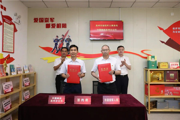 6月10日上午,泉州市退役軍人事務(wù)局與中國郵政泉州分公司聯(lián)合建立的泉州首個崇軍“奔跑”主題郵局揭牌儀式在泉州市政府郵政支局舉行。泉州市退役軍人事務(wù)局局長唐良元、副局長劉洪與中國郵政泉州分公司總經(jīng)理吳寅成、副總經(jīng)理劉興元等雙方領(lǐng)導及相關(guān)人員共同參加揭牌儀式。雙方同時簽訂了《崇軍戰(zhàn)略合作框架協(xié)議》。