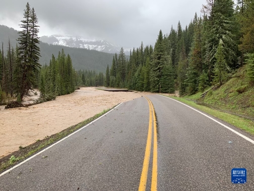 美國國家公園管理局6月13日發(fā)布的照片顯示黃石國家公園東北入口的受損道路。 美國黃石國家公園遭洪水侵襲,公園所有入口暫時(shí)關(guān)閉。 新華社發(fā)(美國國家公園管理局供圖) |