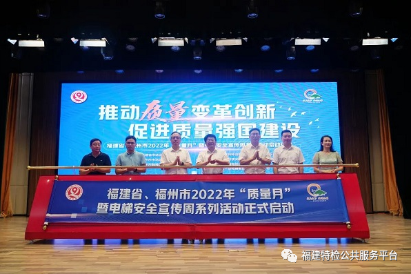 近日,福建省、福州市2022年“質(zhì)量月”暨電梯安全宣傳周系列活動(dòng)啟動(dòng)儀式在福州市鼓樓實(shí)驗(yàn)小學(xué)教育集團(tuán)屏山校區(qū)舉行,福建省市場(chǎng)監(jiān)管局副局長(zhǎng)劉先義、福州市市場(chǎng)監(jiān)管局黨組書記、局長(zhǎng)陳宗勝、福建省特檢院黨委書記徐彩軍等出席活動(dòng)。福州廣播電視臺(tái)少兒頻道全程錄播,新浪福建進(jìn)行了線上直播。
