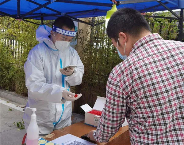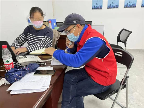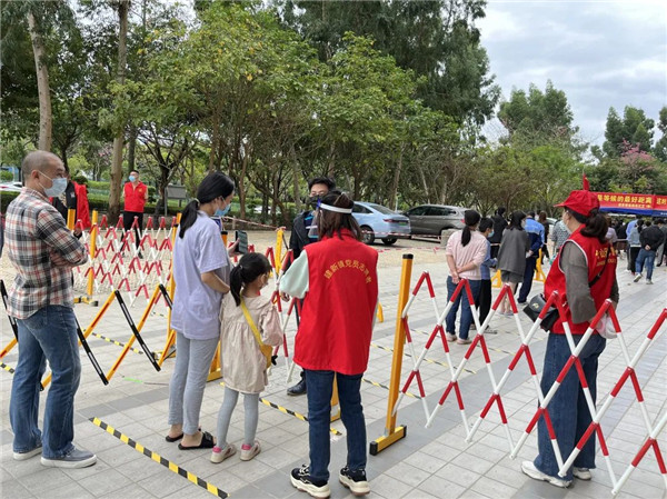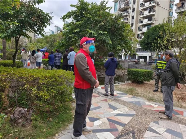 市退役軍人服務(wù)中心黨員干部在倉山區(qū)楊桃?guī)X社區(qū)防疫一線