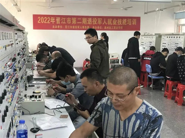 為有效提升退役軍人定向技能,拓寬退役軍人就業(yè)渠道,近日,晉江市2022年第二期退役軍人就業(yè)技能提升班(電工<中級>)開班儀式在泉州輕工職業(yè)學院舉行。共50名退役軍人參加此次培訓。