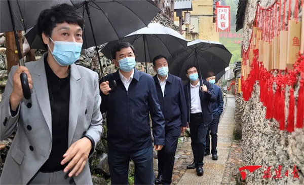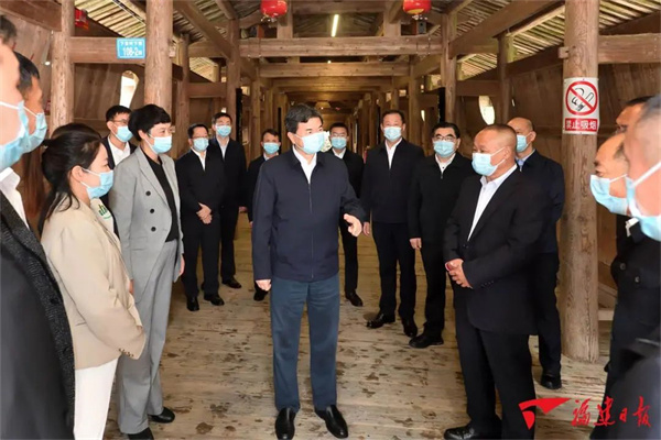 壽寧縣下黨鄉(xiāng)群山環(huán)抱、碧水潺潺,沿岸民居錯(cuò)落有致,古樸廊橋橫跨兩岸。這里是習(xí)近平總書記披荊斬棘、三次調(diào)研的地方,也是習(xí)近平總書記始終關(guān)心牽掛的地方。在“難忘下黨”主題館,周祖翼和大家一道重溫了習(xí)近平總書記“三進(jìn)下黨”的感人場(chǎng)景,深入了解下黨鄉(xiāng)發(fā)生的翻天覆地變化。在鸞峰橋上,周祖翼與基層黨員干部、村民代表圍在一起,聽大家談想法、提建議,共同學(xué)習(xí)黨的二十大精神。周祖翼說,幸福是奮斗出來的。希望鄉(xiāng)親們牢記習(xí)近平總書記的囑托,拼搏進(jìn)取、埋頭苦干,積極建設(shè)美好家園,努力走出一條具有閩東特色的鄉(xiāng)村振興之路。黨員干部要帶領(lǐng)大家勤勞致富,幫助有困難的群眾,以鄉(xiāng)村振興推動(dòng)共同富裕。周祖翼一行還走進(jìn)農(nóng)產(chǎn)品直播間、鄉(xiāng)政府舊址、下黨畫苑和特色餐廳、茶樓,與青年創(chuàng)業(yè)者交談,鼓勵(lì)大家充分挖掘當(dāng)?shù)靥厣珒?yōu)勢(shì),保護(hù)利用好紅色資源,做大“下鄉(xiāng)的味道”品牌,講好“下黨故事”,吸引更多年輕人返鄉(xiāng)創(chuàng)業(yè),一起把家鄉(xiāng)建設(shè)好、發(fā)展好。