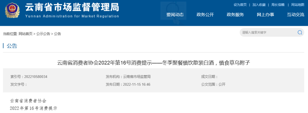 冬季聚餐慎飲散裝白酒,慎食草烏附子 一、消費(fèi)者要樹(shù)立“自己是健康第一責(zé)任人”的健康理念,加強(qiáng)食品安全意識(shí),正確選購(gòu)和飲用白酒。01:選購(gòu)正規(guī)廠家生產(chǎn)的散裝白酒,購(gòu)買(mǎi)時(shí)查看標(biāo)簽內(nèi)容是否齊全,對(duì)明顯低于市場(chǎng)價(jià)格的散裝白酒要保持高度警惕,不采購(gòu)、不飲用生產(chǎn)廠家不明、未經(jīng)登記備案的小作坊生產(chǎn)加工的散裝白酒,不要購(gòu)買(mǎi)、飲用私自勾兌和來(lái)源不明的散裝白酒;02:家庭自釀白酒嚴(yán)禁對(duì)外出售,不要在集體用餐中提供家庭自釀酒;03:農(nóng)村集體聚餐主辦者嚴(yán)禁采購(gòu)無(wú)合格檢測(cè)報(bào)告、生產(chǎn)廠家不明、未經(jīng)登記備案的白酒小作坊生產(chǎn)加工的散裝白酒及自釀酒用于集體聚餐飲用;04:白酒生產(chǎn)經(jīng)營(yíng)者嚴(yán)禁購(gòu)買(mǎi)、貯存和使用甲醇、工業(yè)酒精等非食品原料。使用醇基液體燃料的各類餐飲服務(wù)單位,要加強(qiáng)使用環(huán)節(jié)管理,專人專位管理存放,標(biāo)貼明顯標(biāo)識(shí),做好領(lǐng)用登記,嚴(yán)禁同白酒混合存放。 二、草烏、附子不是食品!請(qǐng)廣大消費(fèi)者慎食草烏、附子等毒性中藥材,避免中毒。01:正確認(rèn)識(shí)草烏、附子等毒性中藥材,在無(wú)醫(yī)生指導(dǎo)的情況下不要擅自服食,做到不參與、不邀約、不聚眾食用草烏、附子;02:經(jīng)營(yíng)者應(yīng)嚴(yán)格遵守《中華人民共和國(guó)食品安全法》《醫(yī)療用毒性藥品管理辦法》,不以任何方式經(jīng)營(yíng)以草烏、附子等毒性中藥材為原料的食品(包括自制泡酒)。 |