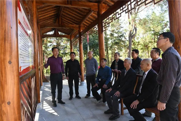 近日,在三明市尤溪革命烈士陵園的一處廊亭里,尤溪縣退役軍人事務(wù)局局長(zhǎng)肖榮鑒正在給老兵們宣講黨的二十大精神。