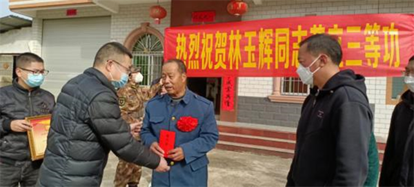 1月5日,長(zhǎng)汀縣退役軍人事務(wù)局、縣人武部組成慰問組,集中開展為立功受獎(jiǎng)現(xiàn)役軍人家庭送立功喜報(bào)活動(dòng),為他們送上立功喜報(bào)及慰問金。 1月5日上午,軍地送喜報(bào)慰問組一路熱熱鬧鬧將喜報(bào)和獎(jiǎng)金、慰問金送到被部隊(duì)表彰為戰(zhàn)備訓(xùn)練三等功的林玉輝家中,與村民們共同見證功臣之家的榮耀時(shí)刻。伴隨著喜慶的鑼鼓聲,送喜報(bào)慰問組捧著立功喜報(bào),走進(jìn)林玉輝家中,為家屬戴上大紅花,向其表示衷心的祝賀?!昂⒆釉诓筷?duì)立功,我們?nèi)胰烁械椒浅9鈽s和自豪。感謝你們送來這份驚喜!”林玉輝家人高興地說。 當(dāng)天上午,榮獲“三等功”的現(xiàn)役軍人俞登祿家人頭攢動(dòng),村民們?cè)缭缇驮诩议T口守候著送喜報(bào)隊(duì)伍的到來。軍地領(lǐng)導(dǎo)一起圍坐在俞登祿家屬身邊聊天,退役軍人事務(wù)局領(lǐng)導(dǎo)對(duì)俞登祿屢獲戰(zhàn)功,為全縣人民爭(zhēng)光表示充分肯定,感謝家屬為祖國(guó)、部隊(duì)培養(yǎng)了優(yōu)秀的軍事人才,勉勵(lì)他在部隊(duì)戒驕戒躁、再立新功。俞登祿父親表示,孩子能有今天的成績(jī),離不開地方黨委、政府的關(guān)心關(guān)懷,離不開部隊(duì)的精心培養(yǎng),今后將繼續(xù)鼓勵(lì)兒子扎根執(zhí)勤工作崗位、安心服役,發(fā)揚(yáng)不怕苦、不畏難、敢拼搏的精神,刻苦訓(xùn)練,再立新功,為家鄉(xiāng)增光添彩。 鯉城區(qū)