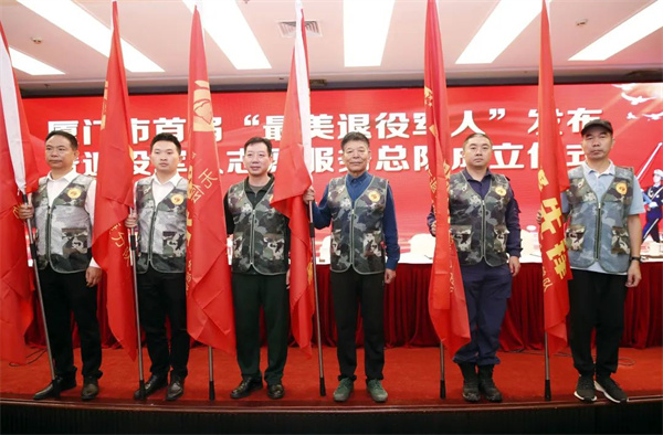 “一鷺先鋒”廈門市退役軍人志愿服務(wù)總隊(duì)?wèi)?yīng)急救援分隊(duì)授旗現(xiàn)場(chǎng),廈門曙光救援隊(duì)隊(duì)長(zhǎng)王剛(右二) 為廈門的救援力量點(diǎn)贊! 為廈門退役軍人志愿者點(diǎn)贊! 愿他們順利出征 平安歸來(lái) |