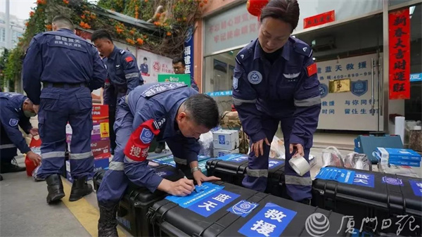 廈門曙光救援隊(duì)出發(fā)前整理裝備(圖源:廈門日?qǐng)?bào)) 廈門藍(lán)天救援隊(duì)出發(fā)的18名隊(duì)員中有3名退役軍人志愿者,攜帶北斗衛(wèi)星電話、生命探測(cè)儀、專業(yè)破拆裝置等救援工具,以及帳篷、棉被、壓縮餅干等救援物資,將從香港轉(zhuǎn)機(jī)(9日)奔赴土耳其災(zāi)區(qū)。