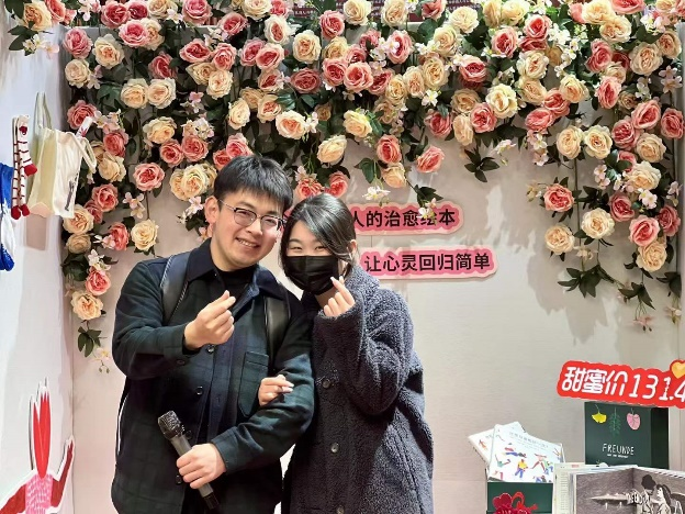 現(xiàn)場主持人興致激昂的開場、朗讀者們聲情并茂地朗讀、贈送新華書店滿減優(yōu)惠券、文創(chuàng)85折優(yōu)惠的有獎問答、為優(yōu)秀朗讀者頒發(fā)“朗讀者證書”等環(huán)節(jié)都吸引了眾多讀者參加和觀看,也促進(jìn)了讀者到店消費。 2月14日,為營造溫馨、浪漫、喜慶的節(jié)日氛圍,中山·閱埕門店開展“千里情書 為愛告白”朗讀者專場活動,以書之名、表我之情,千里情書,為愛告白。 活動現(xiàn)場吸引了許多攜手愛人路過的人們駐足觀看,甚至參與到活動中,他們攜愛而來,為愛發(fā)聲,有即將步入婚姻的情侶,也有結(jié)婚十幾年的夫妻……朗讀者們聲色并茂,感情豐厚,臺下觀眾也認(rèn)真傾聽,不斷鼓掌,高潮迭起,彌漫著甜蜜、幸福、感人的氣息。中山·閱埕門店還為參加活動的讀者特別準(zhǔn)備了情人節(jié)限定驚喜禮袋、香道表演、告白禮物、限時掉落禮品等環(huán)節(jié),陪伴讀者共赴浪漫情人節(jié)。