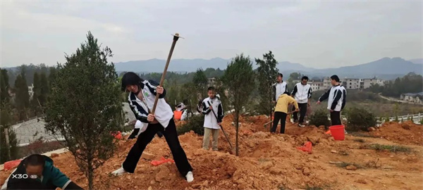 植樹前,全體參加人員集體瞻仰革命烈士紀(jì)念碑,肅立默哀、鞠躬,并繞行紀(jì)念碑一周,追憶烈士們的豐功偉績,表達(dá)對先烈的無限敬仰和深切懷念。隨后,大家按照計(jì)劃分成多個小組分工合作,相互配合,挖坑、種苗、覆土、澆水,各個環(huán)節(jié)有序銜接,有的兩人搭伙,有的三人一組,揮鍬鏟土、定點(diǎn)挖坑、放苗回填、澆水植樹,熱情高漲,干勁十足。此次植樹活動,共為山頂?shù)缆穬蛇叿N植塔柏300株、工程部門樓左側(cè)種植楠木50株,經(jīng)過一番熱火朝天的勞動,一棵棵樹苗迎春風(fēng)而立,煥發(fā)出勃勃生機(jī),也正像衛(wèi)士一般守護(hù)著革命烈士。