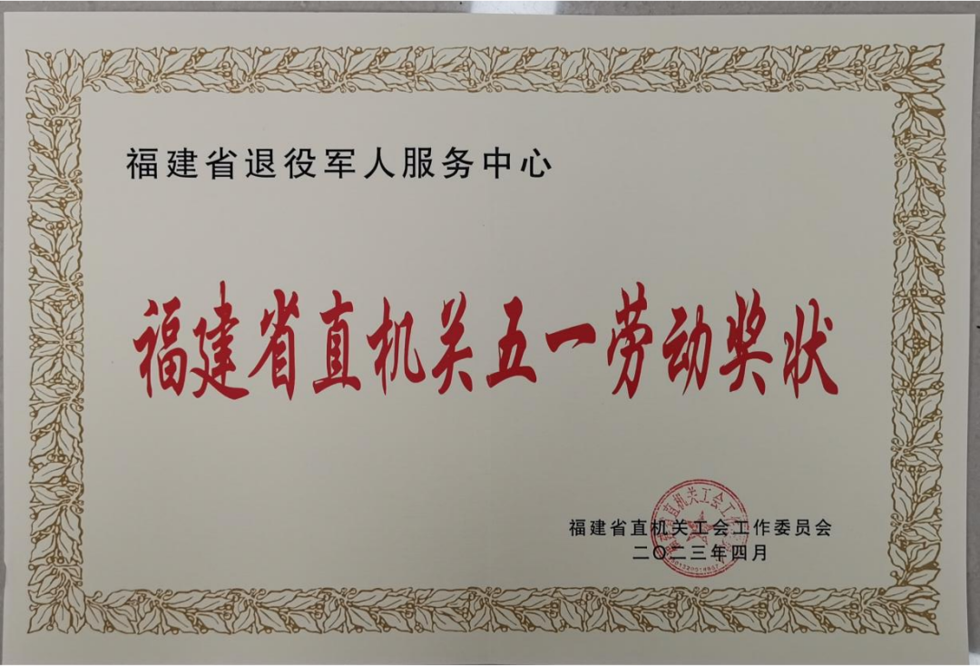 喜報!省退役軍人服務中心獲“福建省直機關五一勞動獎”