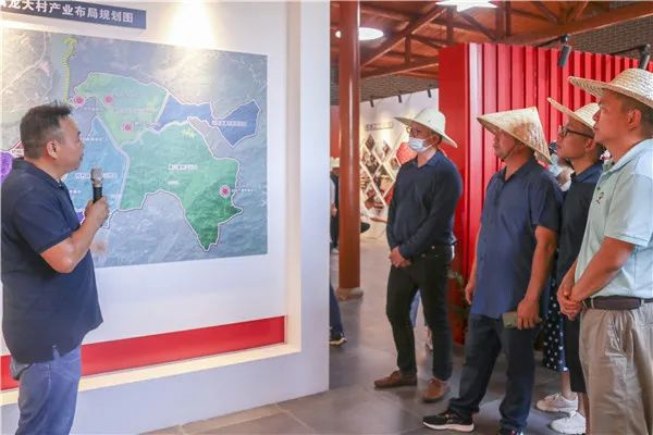龍大村羅治林(左一)為到訪嘉賓介紹積分制工作情況。 “美麗庭院”創(chuàng)建工作開展以來,羅治林還帶著班子制定了“積分制”管理辦法,并通過“積分制”微信平臺全程公開評比信息。在村部“我愛我家”積分超市,村民可以用積分定期兌換日常生活用品……“積分制”管理得到村民積極響應。 “自從村里推行‘積分制’以后,我們家前庭后院都打掃得特別干凈,參加村里志愿活動也可以得積分,我們都愿意干。”曾獲得100分、位于積分榜榜首的姜蘭英說。小積分推動大治理,龍大村村容村貌煥然一新,干群關系更加和諧,鄉(xiāng)風民風明顯好轉。 目前,人居環(huán)境整治“積分制”管理辦法已在貢川鎮(zhèn)鋪開。 發(fā)展旅游 荷包鼓起來 庭院有了美景、村里有了風韻,如何讓“美麗生態(tài)”變成“美麗經濟”,使村財富起來,讓生活美起來?羅治林開始“折騰”起來。 2021年,龍大村被列為省級鄉(xiāng)村振興試點村,永安市建設貢川—曹遠—燕西街道“桃源古韻、文旅休閑”精品線路。羅治林看中時機,積極探索“黨支部+公司+項目團隊+村民”發(fā)展模式,由黨支部委員引領,70%村民自愿入股32萬元成立了立紅文化旅游投資有限公司,將栟櫚潭、地博等旅游資源,以及桃源春韻、知青部落等家庭農場進行整合共享。
