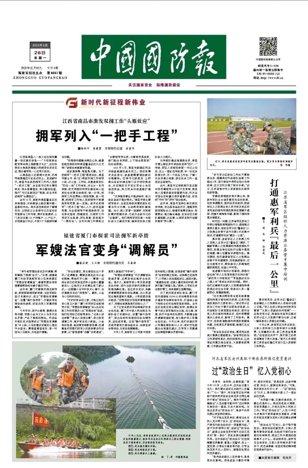 《中國(guó)國(guó)防報(bào)》6月26日刊登文章報(bào)道廈門(mén)市司法擁軍新舉措。 “幸虧有軍嫂法官的及時(shí)調(diào)解,幫我解除了婚姻‘紅燈’。” 日前,福建省廈門(mén)市駐軍某部軍官小馬來(lái)到營(yíng)區(qū)“軍嫂法官調(diào)解室”,感謝軍嫂法官助理覃娟幫助他與妻子重歸于好。 近年來(lái),廈門(mén)市賡續(xù)雙擁光榮傳統(tǒng),積極探索擁軍新舉措,與駐軍部隊(duì)簽訂共建協(xié)議,成立“軍嫂法官調(diào)解室”、設(shè)置“編外指導(dǎo)員”、開(kāi)通涉軍法律咨詢熱線等,切實(shí)為軍人軍屬紓困解難。 今年年初,因子女教育、婆媳關(guān)系等問(wèn)題,軍嫂小金與丈夫小馬多次發(fā)生矛盾,產(chǎn)生了離婚的想法。聽(tīng)說(shuō)去年部隊(duì)機(jī)關(guān)掛牌成立“軍嫂法官調(diào)解室”并上線,小馬抱著試試看的心理在平臺(tái)留言。覃娟查看留言后,第一時(shí)間與小馬聯(lián)系,為他進(jìn)行調(diào)解。 “你住的營(yíng)區(qū),我也曾經(jīng)住過(guò)十多年?!痹谡{(diào)解室,覃娟迅速拉近與小金的距離,幫她打開(kāi)心扉……覃娟一邊結(jié)合自己的切身經(jīng)歷和小金推心置腹地談心,讓她對(duì)丈夫的事業(yè)有了新認(rèn)識(shí);一邊提醒小馬平時(shí)多關(guān)心妻子,當(dāng)好婆媳關(guān)系的“潤(rùn)滑劑”。最終,小金與小馬和好如初。